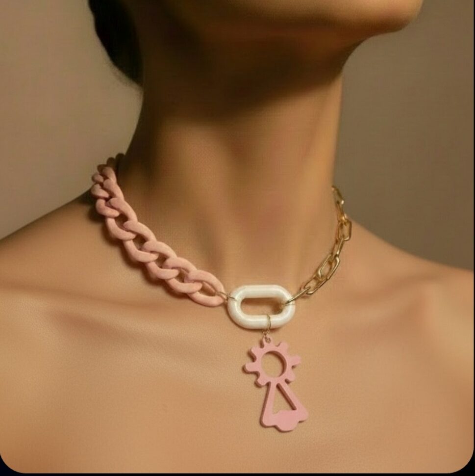 - Material: Acero inoxidable y eslabones acrílicos de color