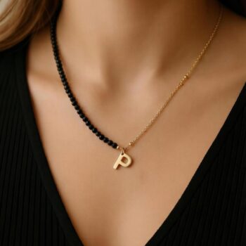 Collar mitad cadena mitad bolas e inicial de acero inoxidable