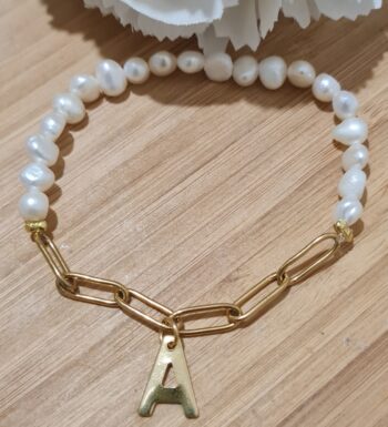 Pulsera mitad de perlas con cadena de acero inoxidable e inicial
